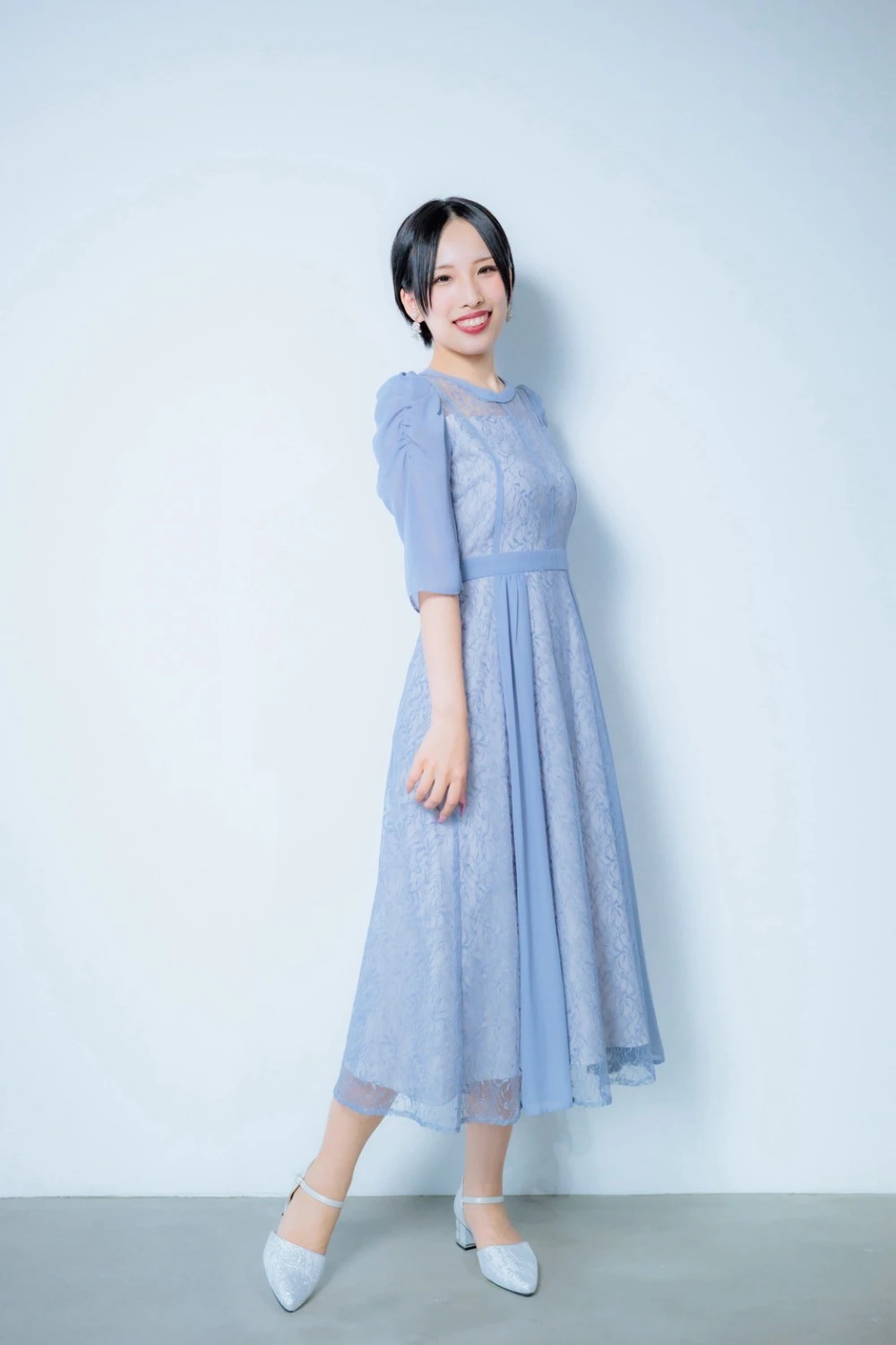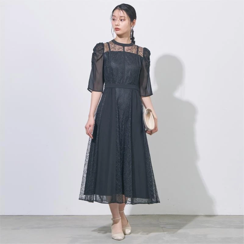 スカート部分には刺繍レースと細プリーツの切り替えを採用し、華やかかつ動きのあるデザイン🥰