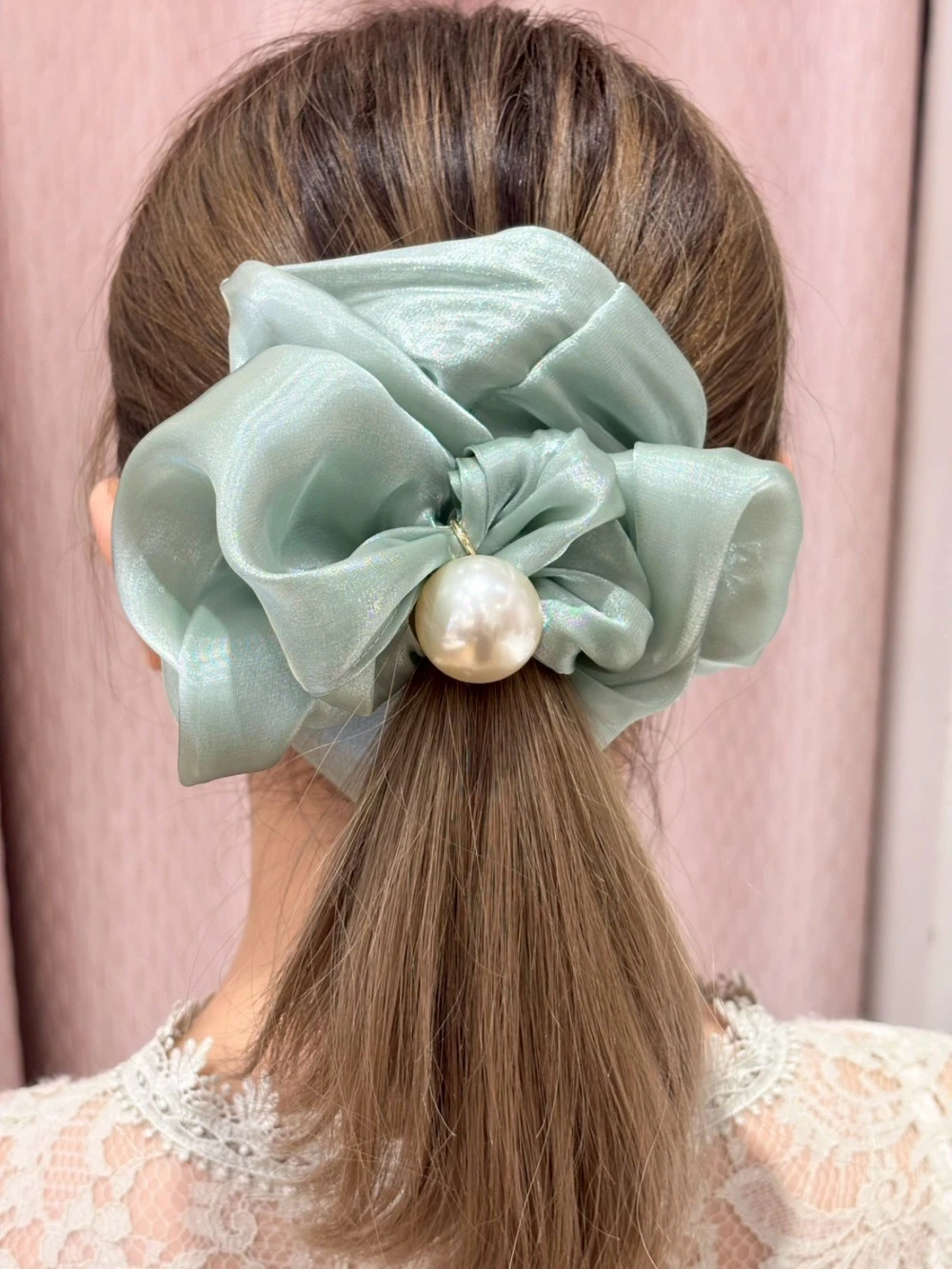 たっぷり感がかわいい、主役級のパール付きシュシュ🥰