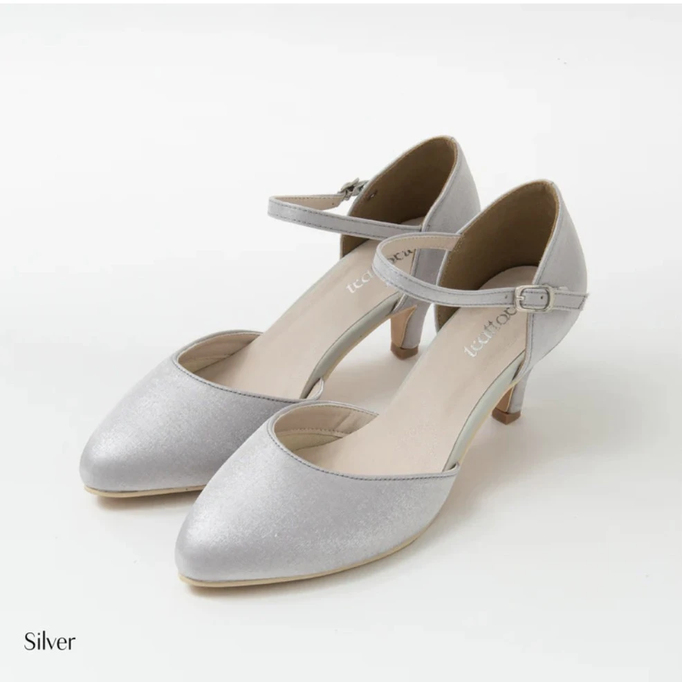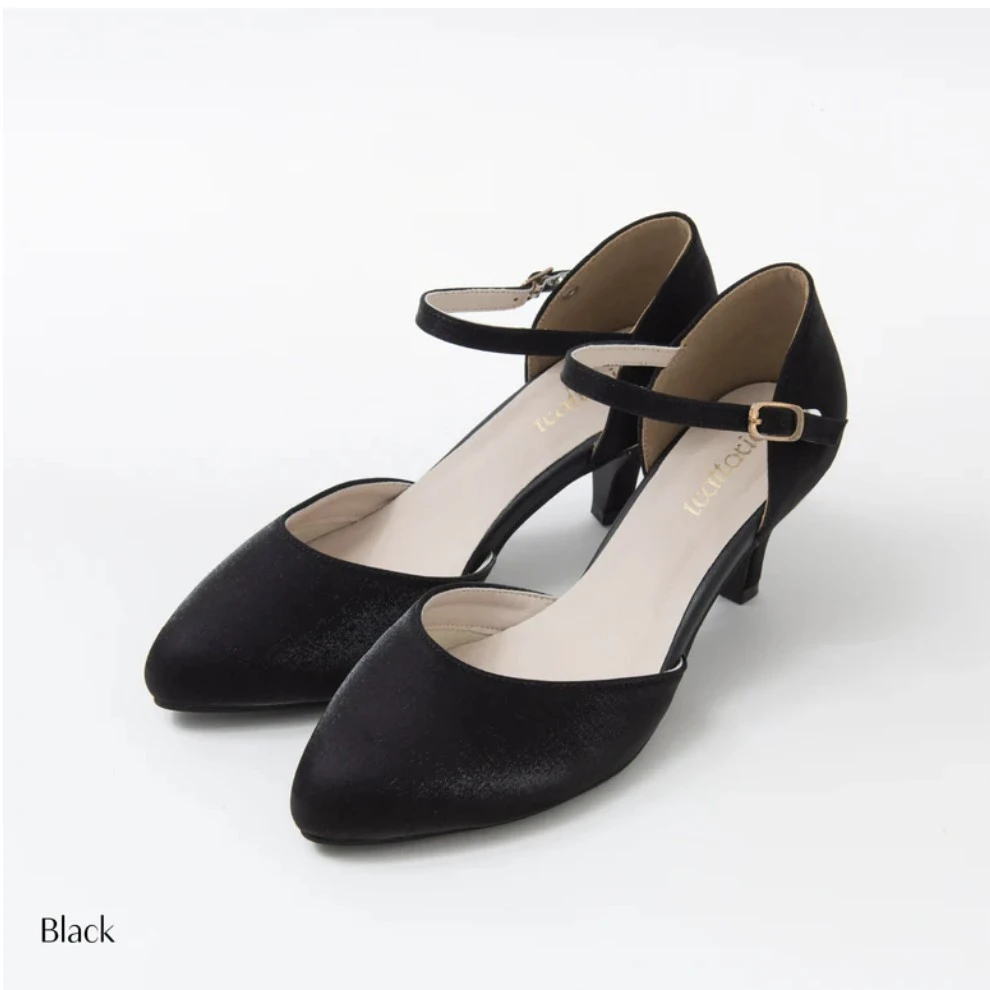 サテン調の生地が上品な光沢を放ち、足首をしっかりホールドするストラップで安定感のある履き心地を実現✨