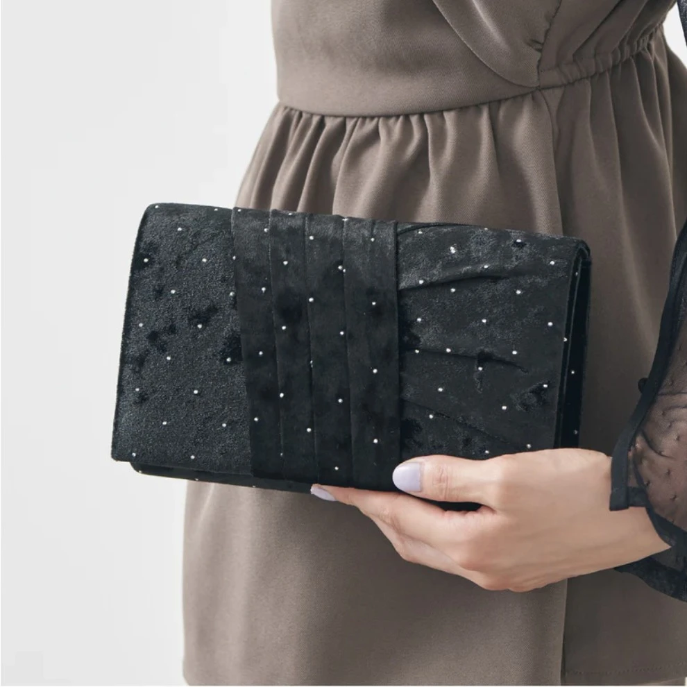 柔らかなベロア素材を使用し、上品な光沢感が魅力のクラッチバッグ✨