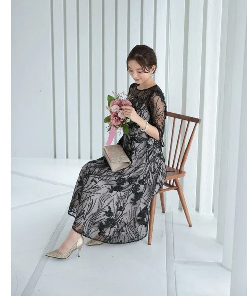 トレンド刺繍が華やかなお呼ばれドレスです✨️