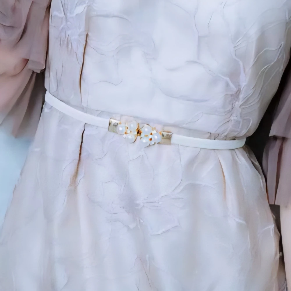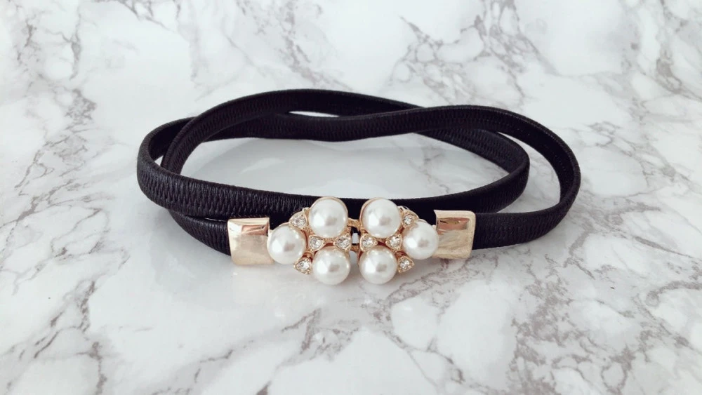 パールとビジューのモチーフが女性らしさを引き立てるゴムベルト💞