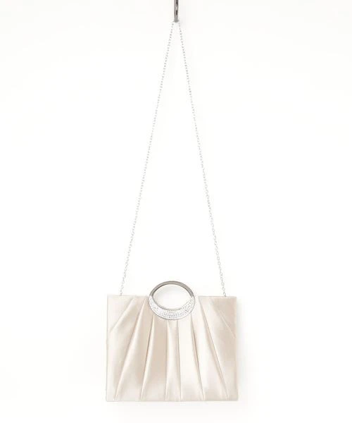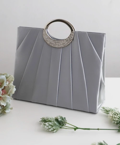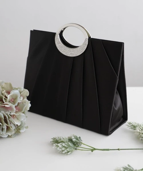 シャープなスクエアシルエットと持ち手部分のビジューがクールな印象のバッグ✨️