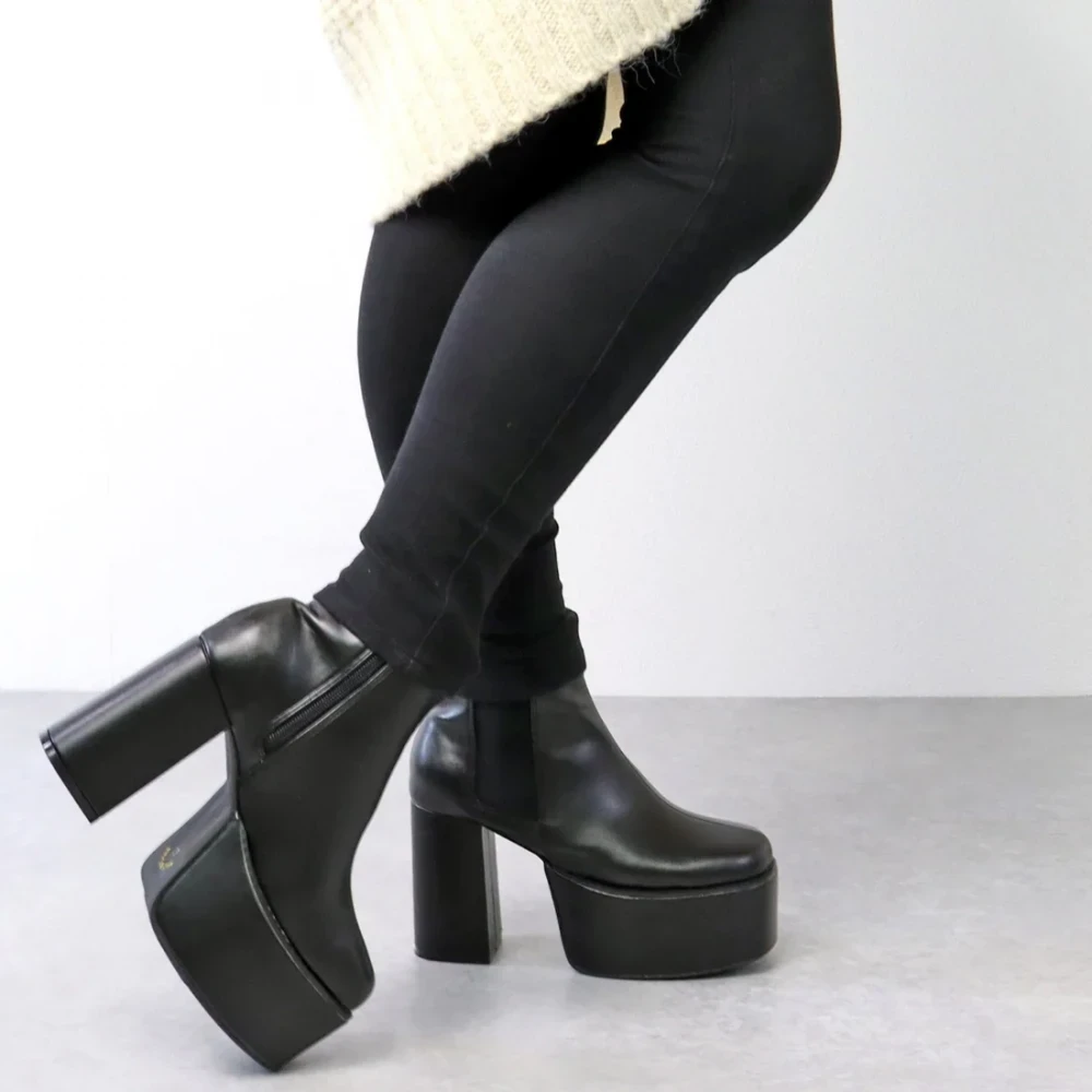 4cmのストームが違いを生み出すアクセントに! 冬の街並みにマッチしたモードなヒールブーツ。 足元に自信を生み出す一足。 【価格】¥4,928-(税込) ぜひ店頭でお試しください!