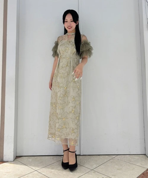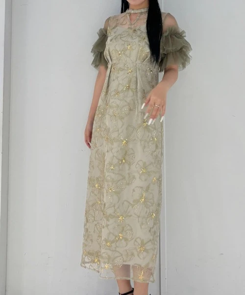 繊細なチュールの上にトレンドのスパンコールをふんだんに使った刺繍を施したドレス❤️