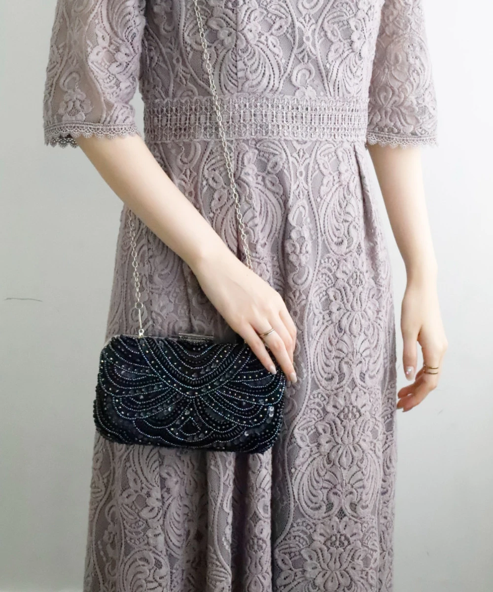 ビーズ刺繍のボックスタイプのハードクラッチバッグ✨️