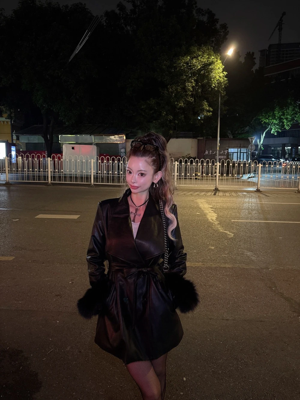 ファー×レザーのミドル丈コートは高級感たっぷりでワンビ風にも着れちゃう優れもの🥺✨