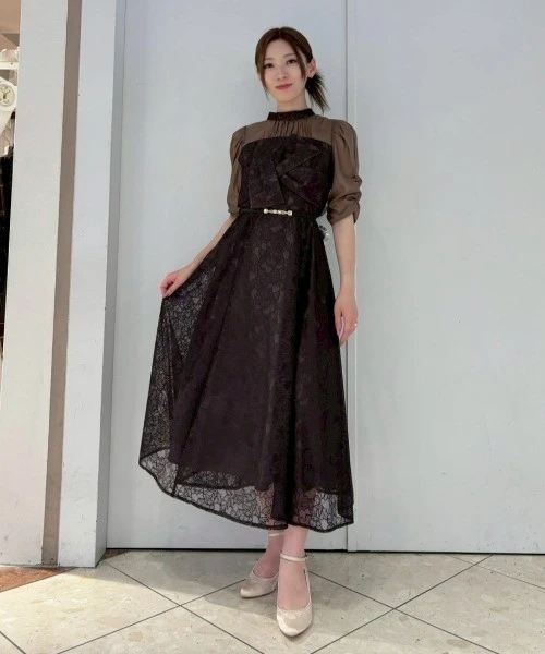 印象的なフラワーレースを纏ったオケージョンドレス🌸