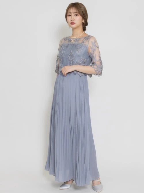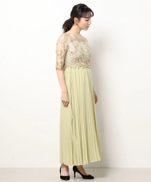 肌触りのよいシフォン素材のプリーツスカートがエレガントに、ドレス全体を繊細で上品な印象に仕上げてくれます❤️