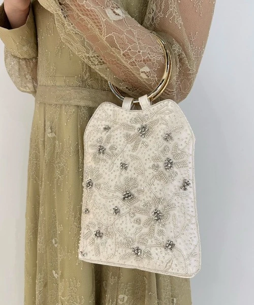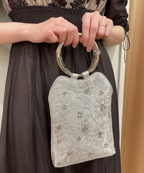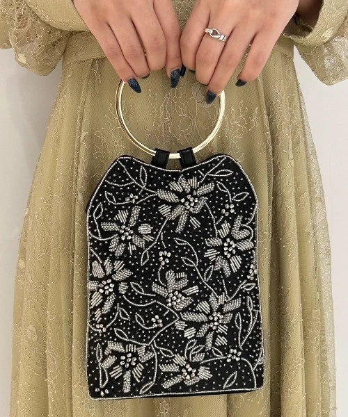 大きなリングハンドルがワンポイントと手縫いのビーズでひとつずつ丁寧に仕上げた特別感のある一点です❤️