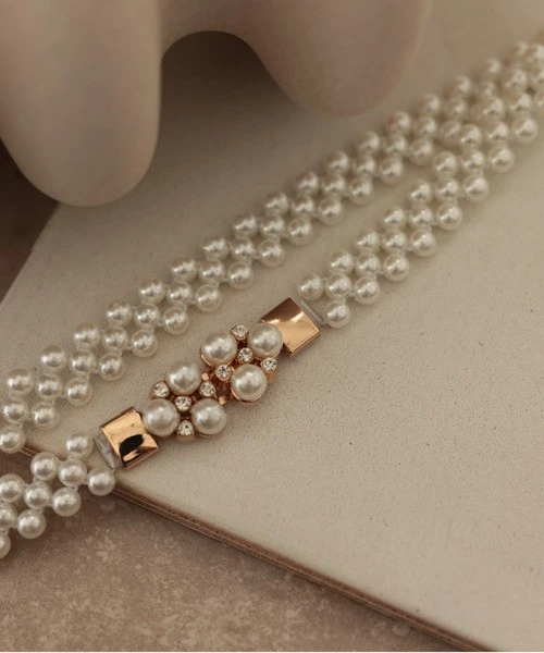 きらきら輝くパールゴムのベルトは、品がある印象に✨️