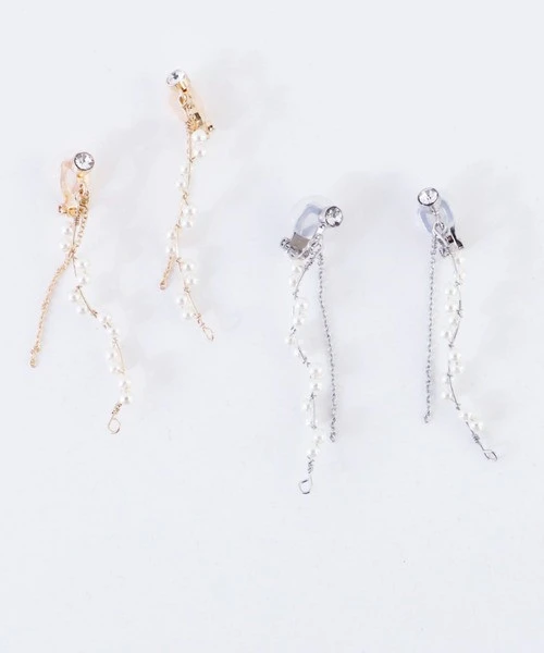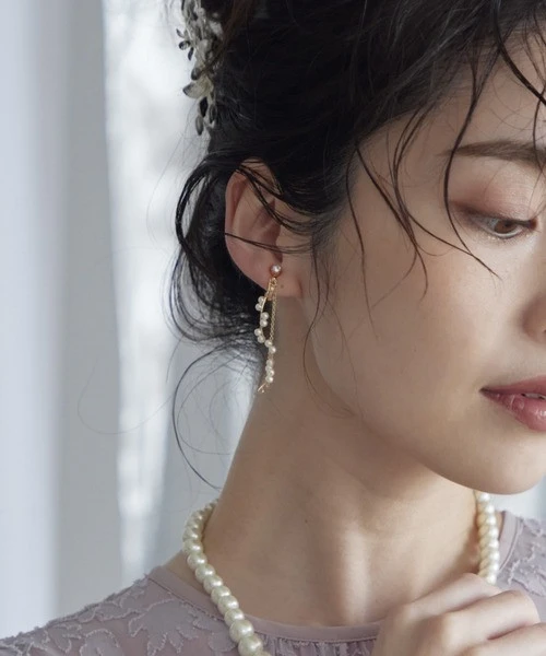 キラッとしたラインストーンのイヤリングトップと細チェーンの揺れ感で、オケージョンシーンにぴったり❤️