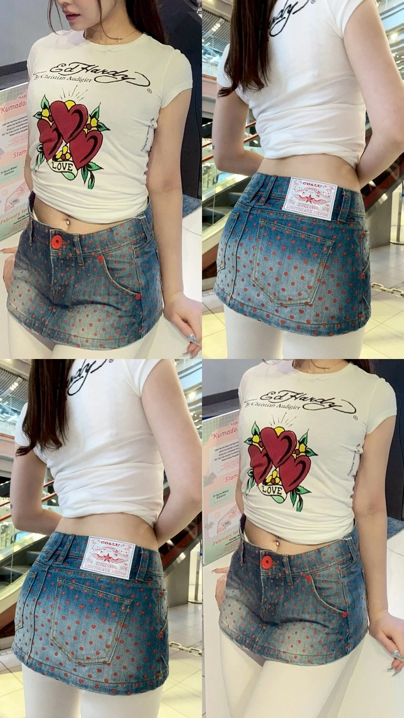 Tシャツのハートプリントに合わせてボトムはCOCOLULUのハート×ドットのデニムミニで合わせてとことん可愛く🩷🩷