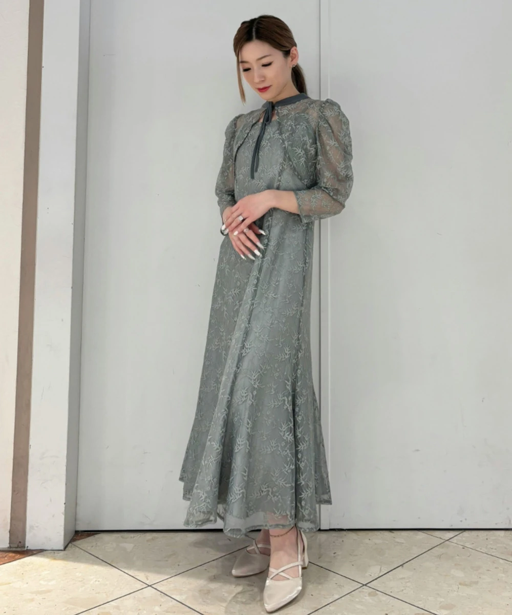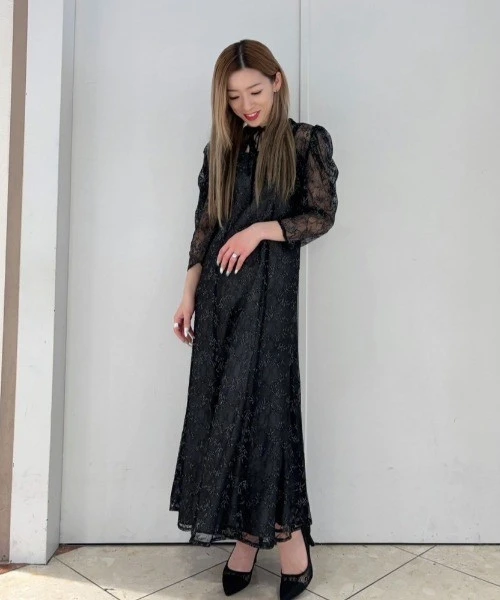 キャミワンピースにデザインボレロを組み合わせたきらきらと煌めくラメレースが上品なオケージョンドレス✨️