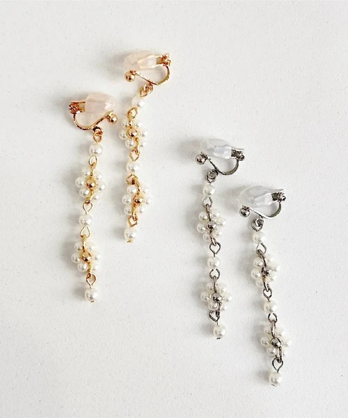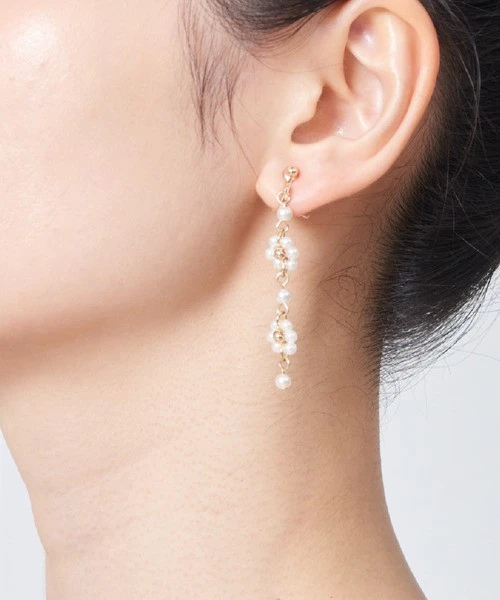 上品な輝きの小粒パールが連なるイヤリング✨️