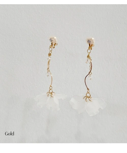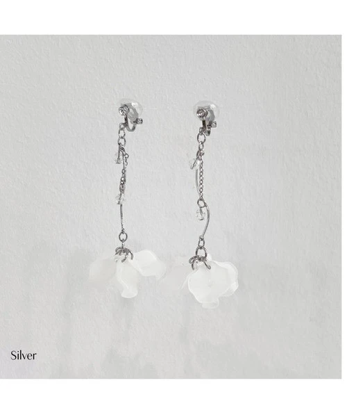 透明感のある花びらがふんわりと揺れる、フェミニンなデザインのイヤリング❤️