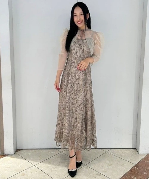 キャミワンピースは、細い糸で刺繍した立体感のあるコードレースが特徴的❣️