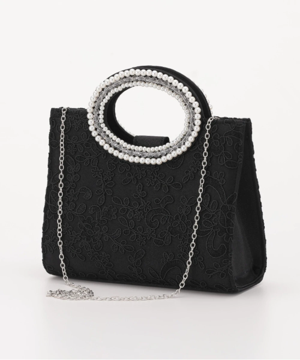 パールと刺繍で女性らしさをアップさせてくれるパーティバッグ😊