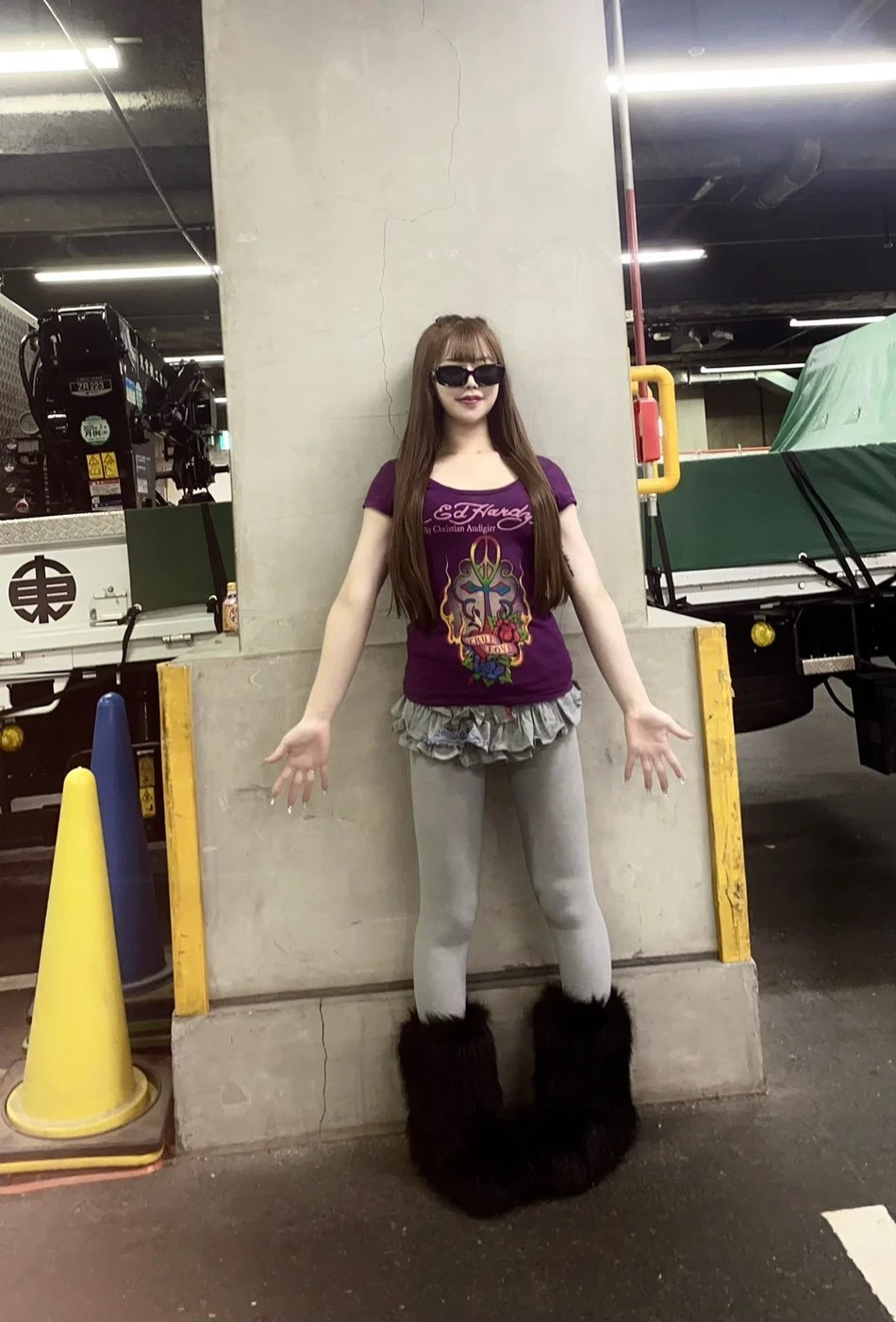 パープルのTシャツもカラフルプリントがいつものEd Hardyと違って少しポップでオシャレな印象に✨