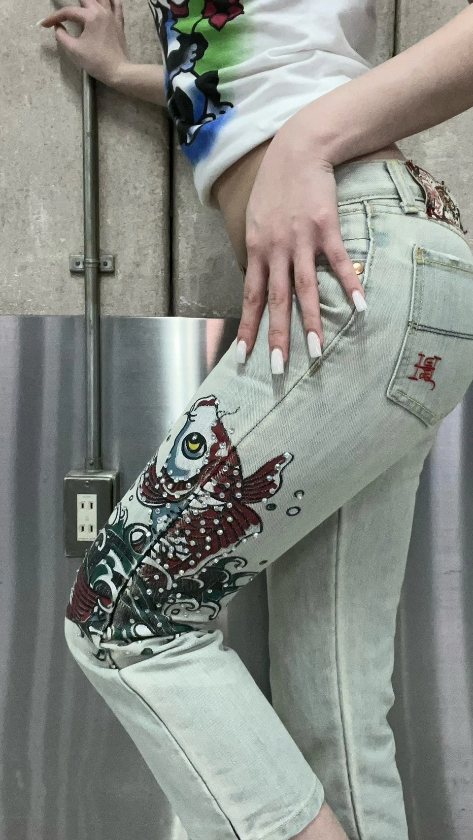 ことりさん着用デニムは鯉にキラキラストーンがついたEd Hardyの中でも珍しいデザインのデニム🩵💙