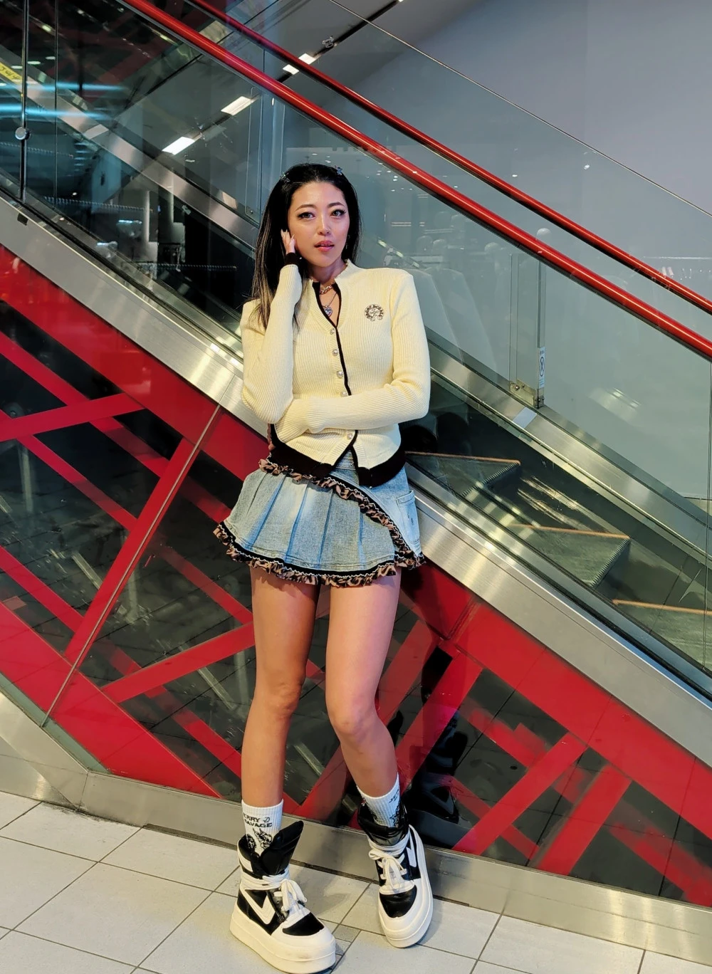 トップスは少し大人っぽくカラーガーデを合わせましたが、思いっきりギャルっぽくするならトップスをキラキラ付きキャミやレオパードにするのがオススメです😘