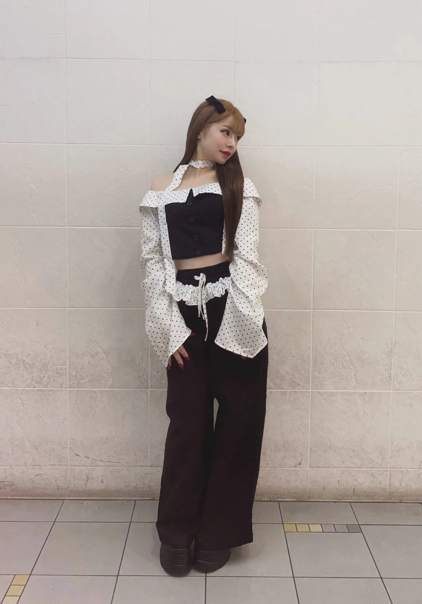 りなさん着用アイテムはデートにもぴったりなドット×黒の可愛いけどかっこよく決まるセットアップコーデ❣️