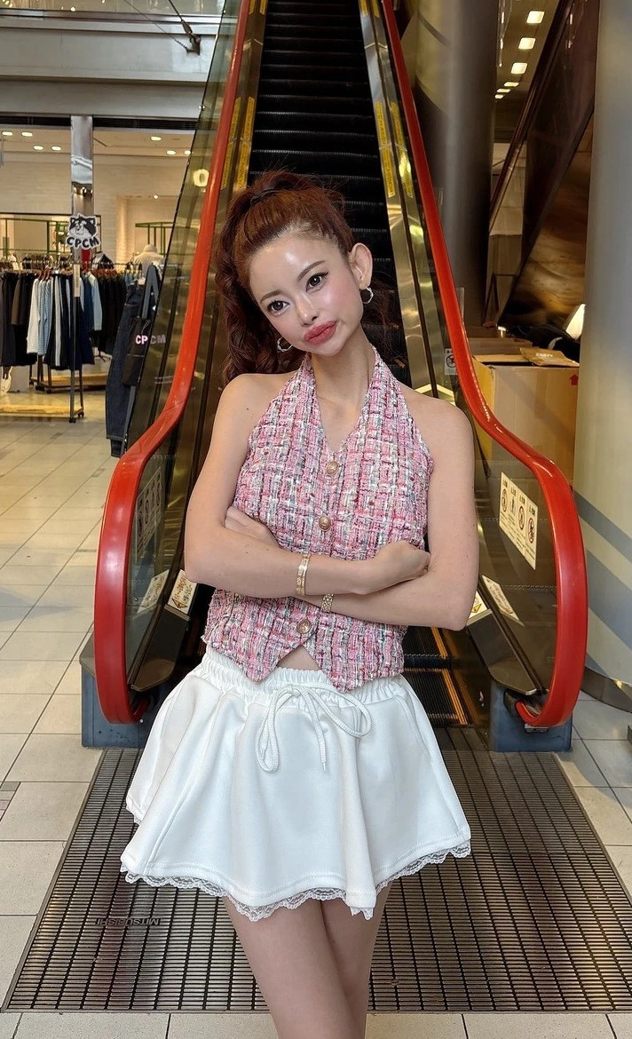 ツイードベストは1枚で着ても重ね着でも使えるトップスで、写真の甘々ピンクと大人っぽいブラックもございます❣️❣️