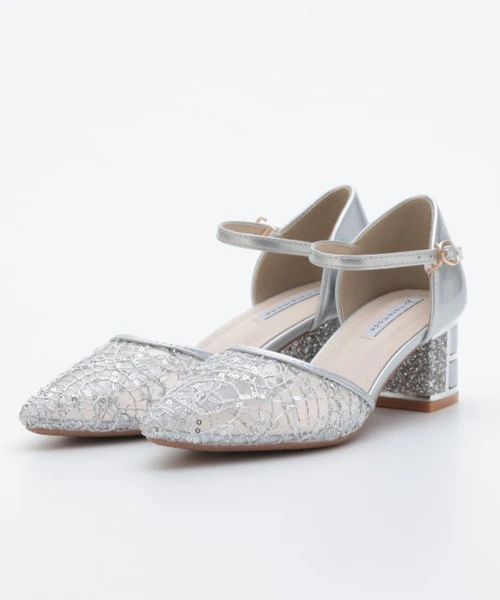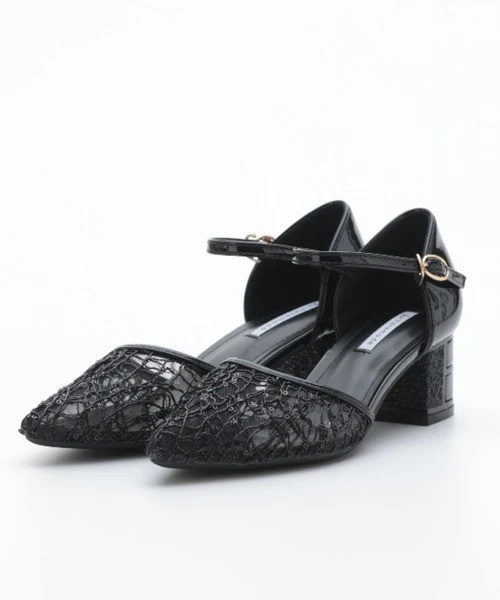 繊細なネット素材に、スパングルコール刺繍を施した華やかなパンプス💞