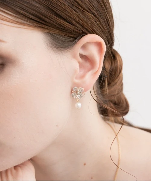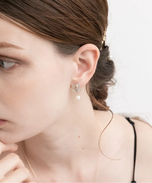 透かしフラワーとビジューを組み合わせた贅沢なモチーフと艶やかなパールが垂れ下がる魅力的なデザイン🌸