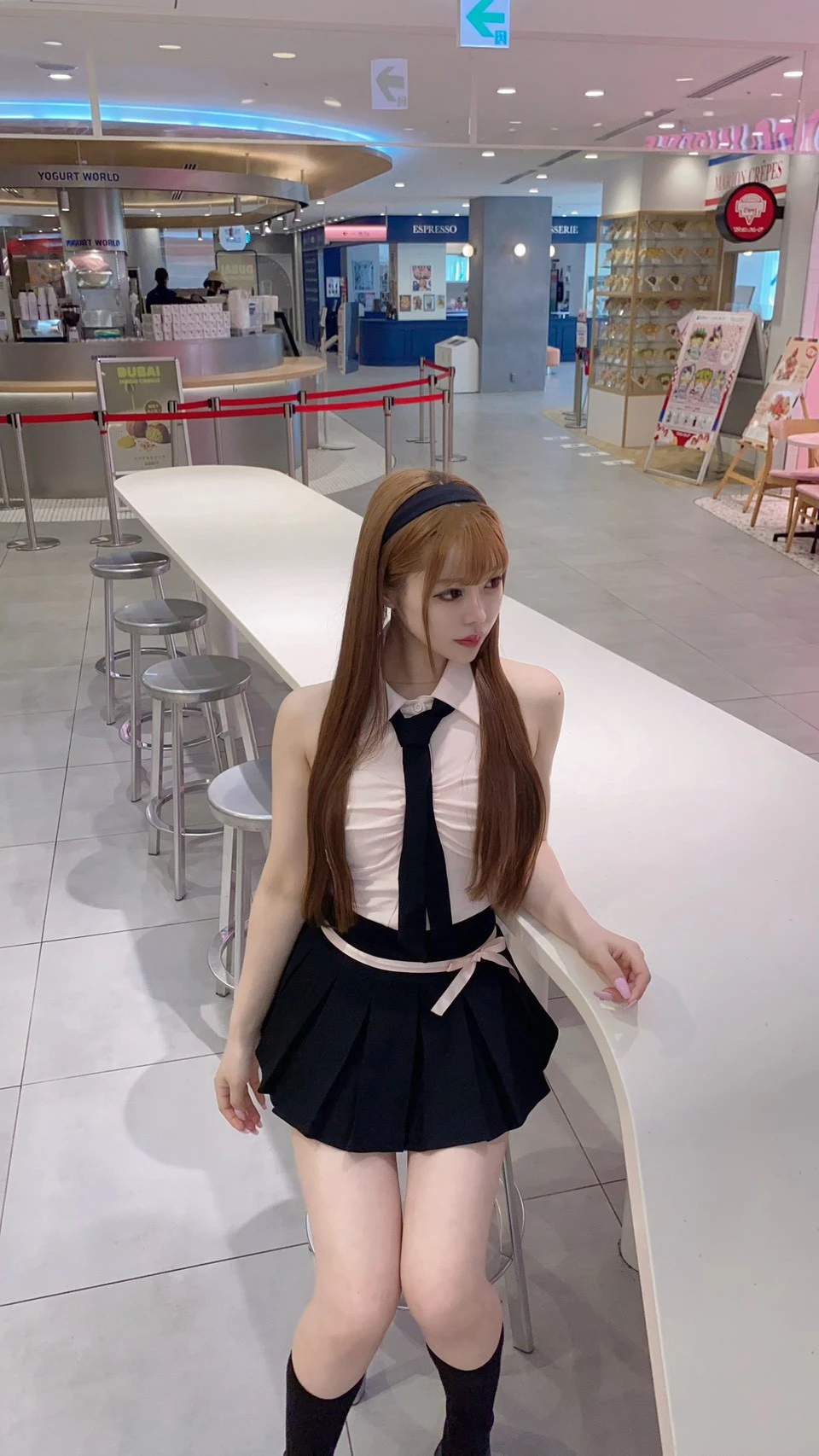 ネクタイ付きで少しマニッシュな雰囲気がありながら、スカートのピンクリボンが可愛さを演出してくれる🥺✨